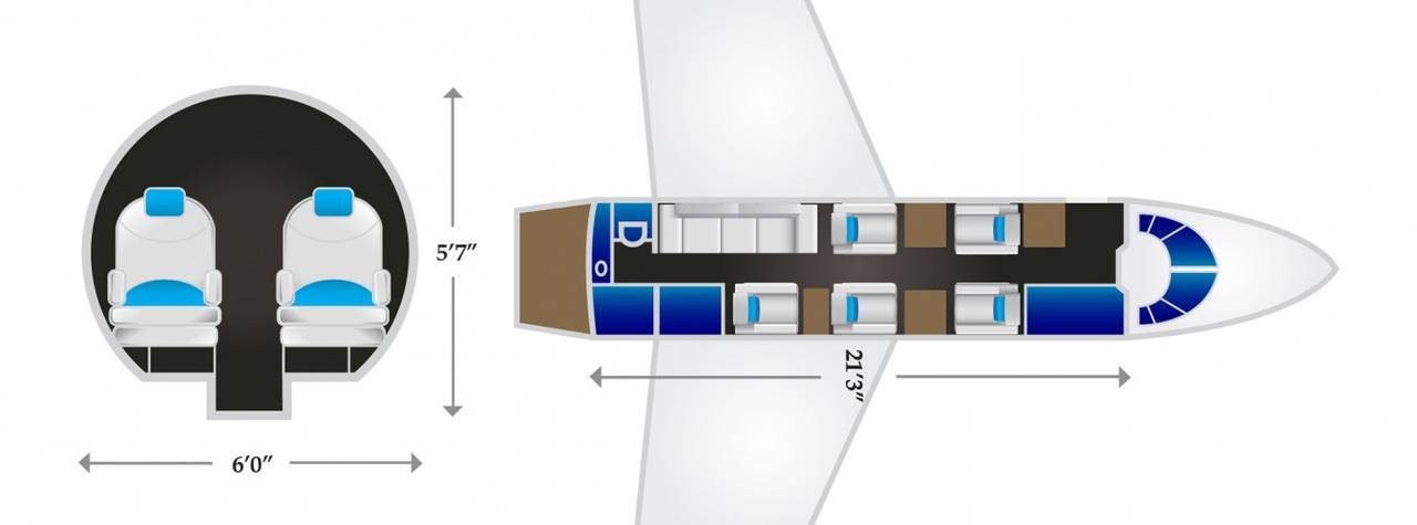 Двухмоторный Citation Mustang лёгкий самолёт совмещает в себе практичность и комфорт. В салоне размещены 4 комфортабельных кресла, объёмный багажный отсек может вместить в себя до 136кг багажа, в том числе и лыжи. Арендовать Citation Mustang возможно с одним пилотом, что позволяет самолёт данного класса.